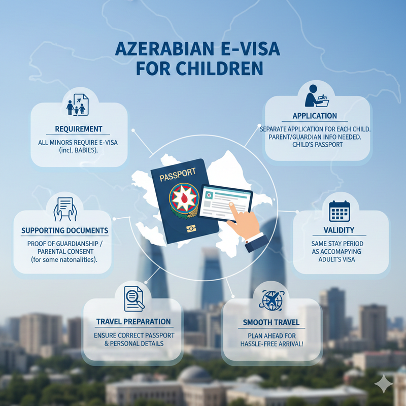 Indeed, kids coming to Azerbaijan require an e-visa or any other permission to enter the country just like adults. This is true for every minor, no matter how young they are, even for babies and very young children. When the e-visa is being processed, the parent or guardian has to give the child’s personal information and sometimes, the child’s passport is also required.