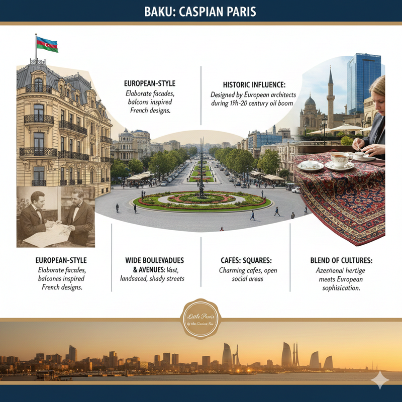 - Wide Boulevards & Avenues: Baku's vast, landscaped, and shady streets are like Parisian boulevards.